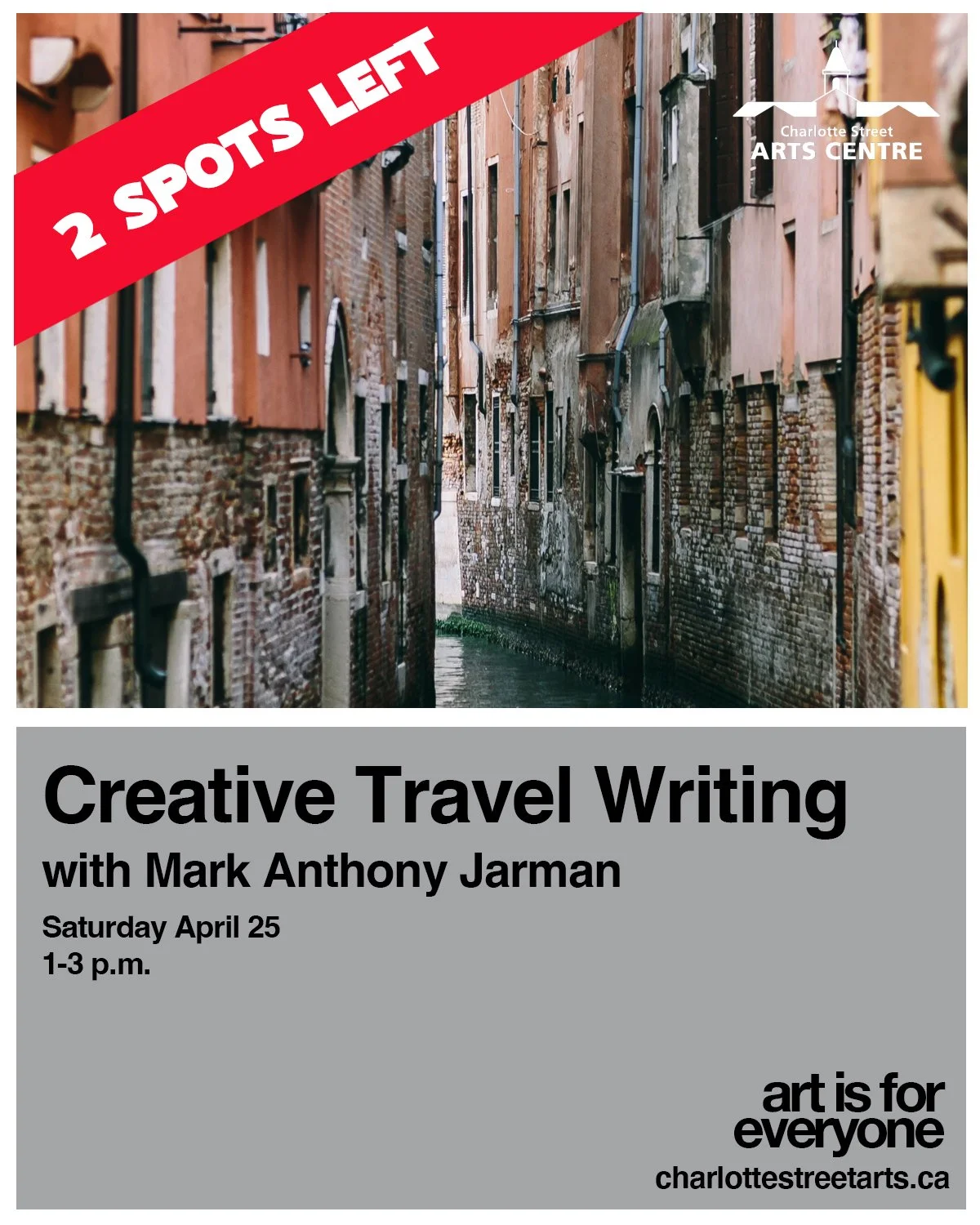 If you missed one of the above opportunities, we have a waitlist. Contact director@charlottestreetarts.ca to have your name added.